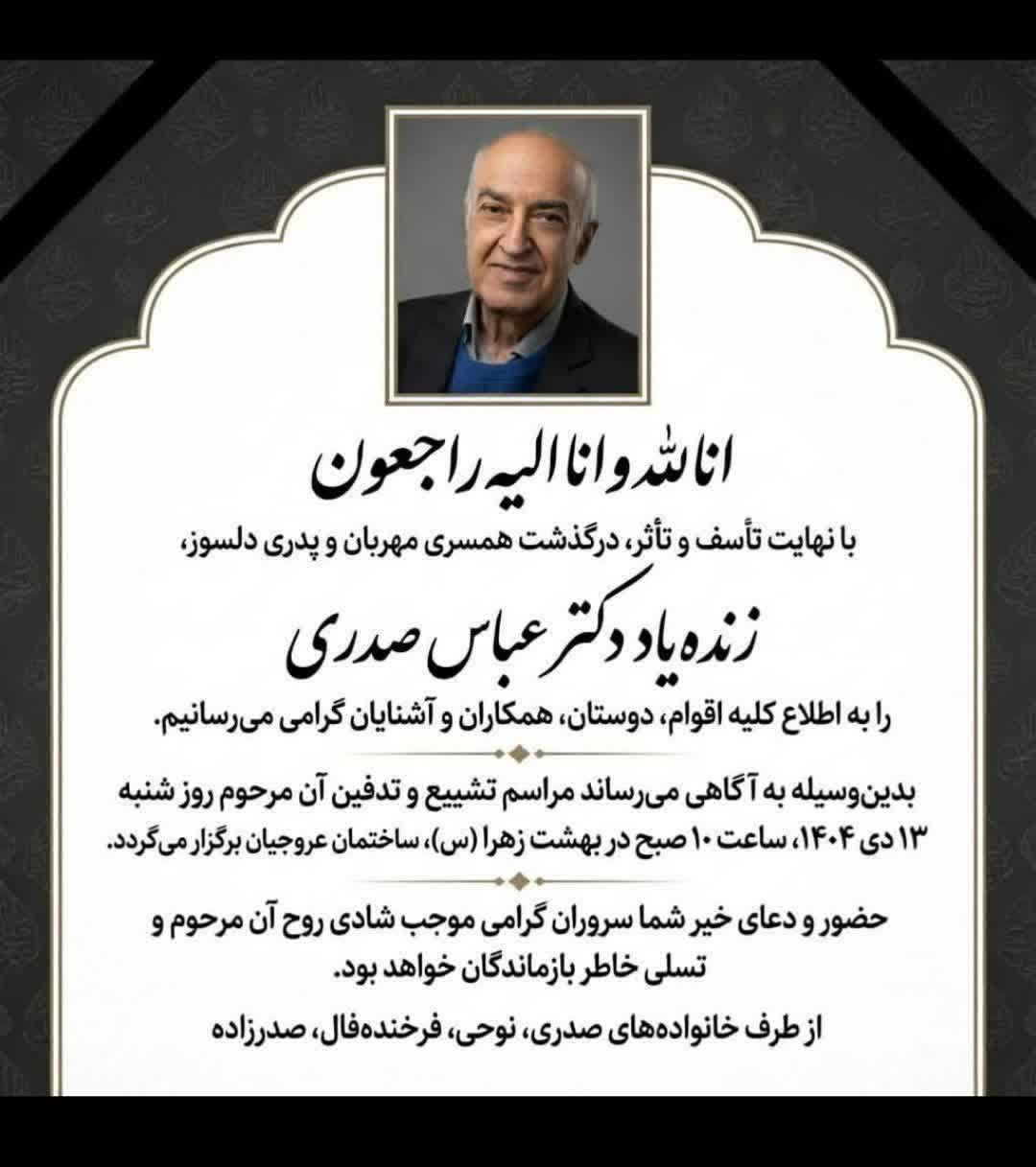▪️از خداوند منان، برای آن زنده‌یاد، رحمت واسعه‌ی الهی و برای بازماندگان، صبوری و شکیبایی مسالت می‌نماییم.