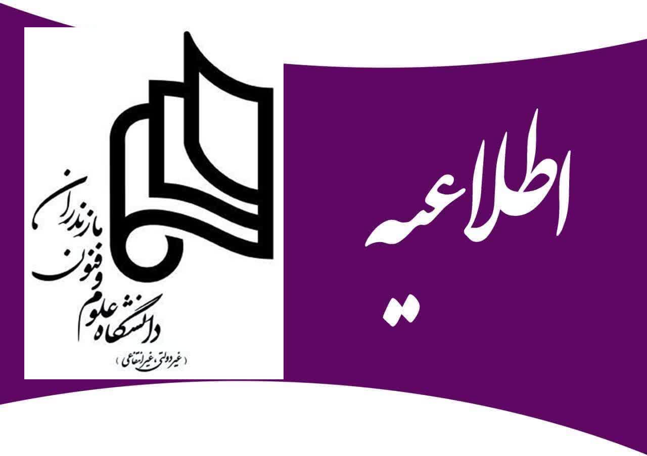 اعلام زمان برگزاری آزمون حضوری اعلام زمان برگزاری آزمون حضوری قابل توجه کلیه دانشجویان گرامی چنان‌چه دانشجویی موفق به شرکت در امتحان مجازی نشده است، امتحان مجدد در روز دوشنبه 20 بهمن 1404 - ساعت 11 صبح در محل سالن زنده‌یاد صمیمی دانشگاه علوم و فنون مازندران به صورت حضور ..